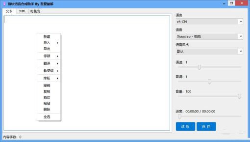 软件功用:导入TXT文件,导入SRT字幕文件,保存导出编辑内容,支撑中止,自定义中止时间,试听,部分试听,翻译,部分翻译,自动排版,自动标点,文本替换,敏感词提醒,敏感词替换,SSML多人语音混编等功用。